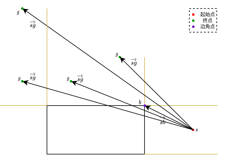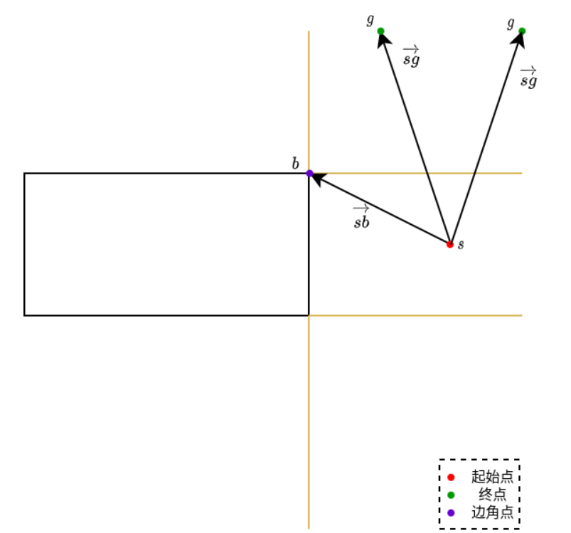 起始点与终点之间的向量表示为 \overrightarrow{s g}